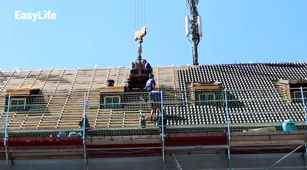 Dachsanierung mit EasyLife Sigma-Pfanne Steht die Neueindeckung eines Daches an, prüfen die Experten stets auch die Tragfähigkeit von Lattung und Dachstuhl. Denn schon bei einem durchschnittlichen Einfamilienhaus kommen mehrere Tonnen Gewicht durch die Dachpfannen zusammen. Video anschauen